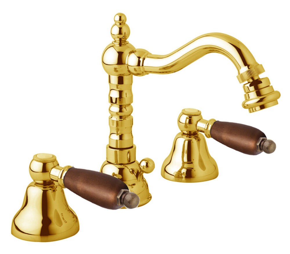 Смеситель Cezares FIRST-BBS2-03-Nc для биде, золото 24 карат, ручки орех