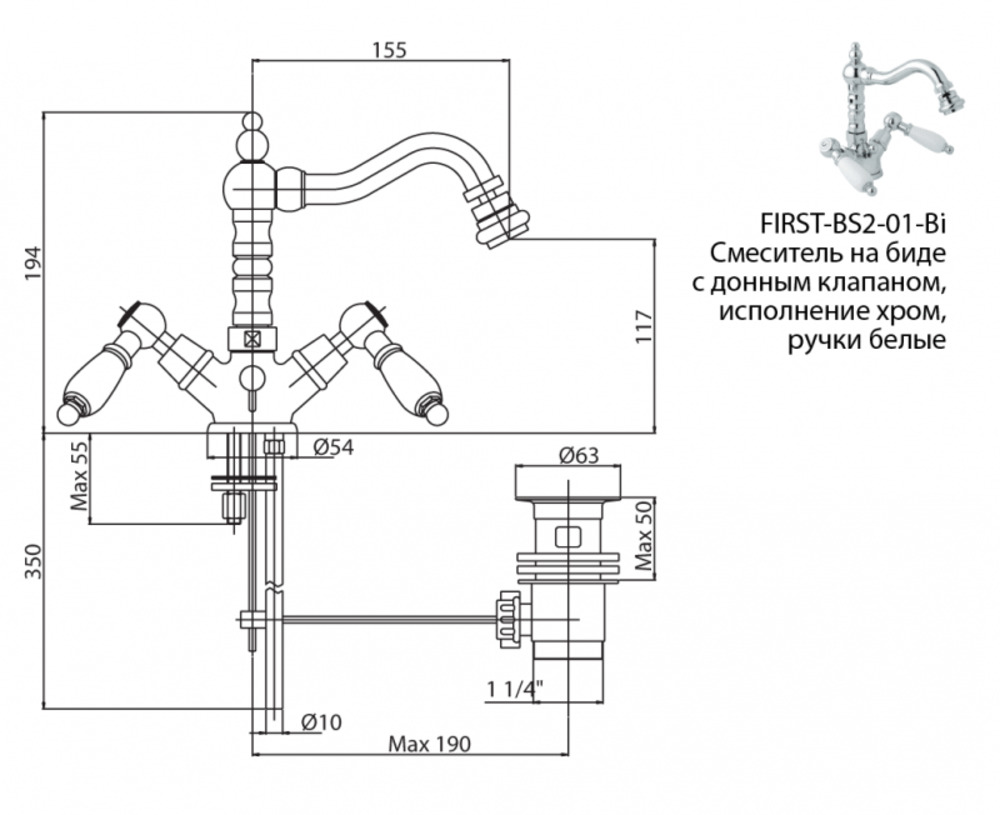Смеситель Cezares FIRST-BS2-02-Bi для биде, бронза, ручки белые
