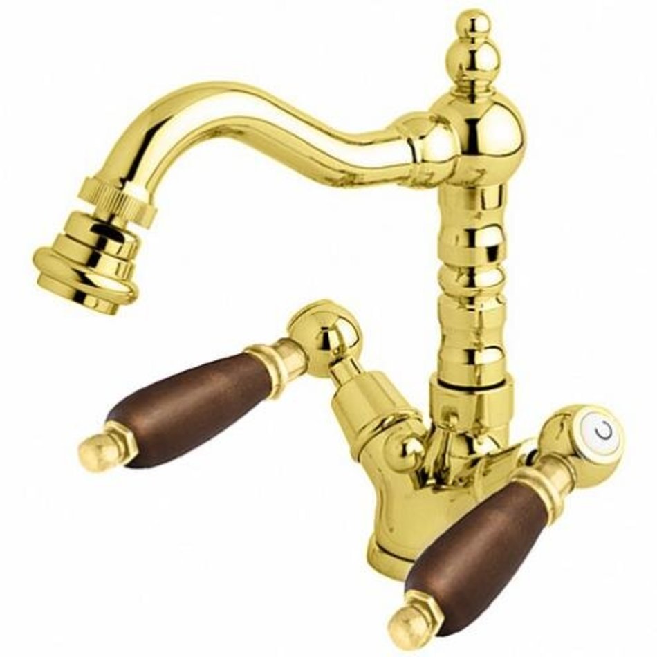Смеситель Cezares FIRST-BS2-03-Nc для биде, золото 24 карат, ручки орех