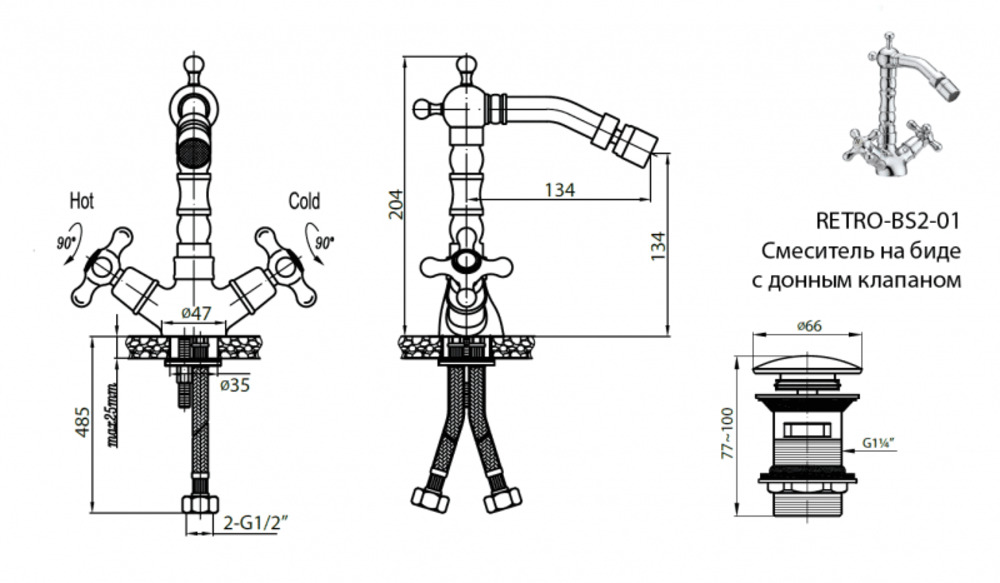 Смеситель Cezares RETRO-C-BS2-02 для биде, бронза