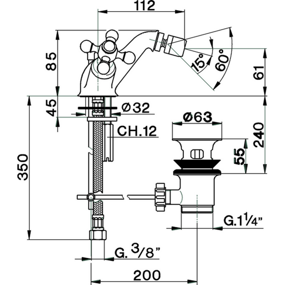 Смеситель Cisal Arcana Ceramic AC00055021 двухвентильный для биде на 1 отверстие с донным клапаном, цвет хром