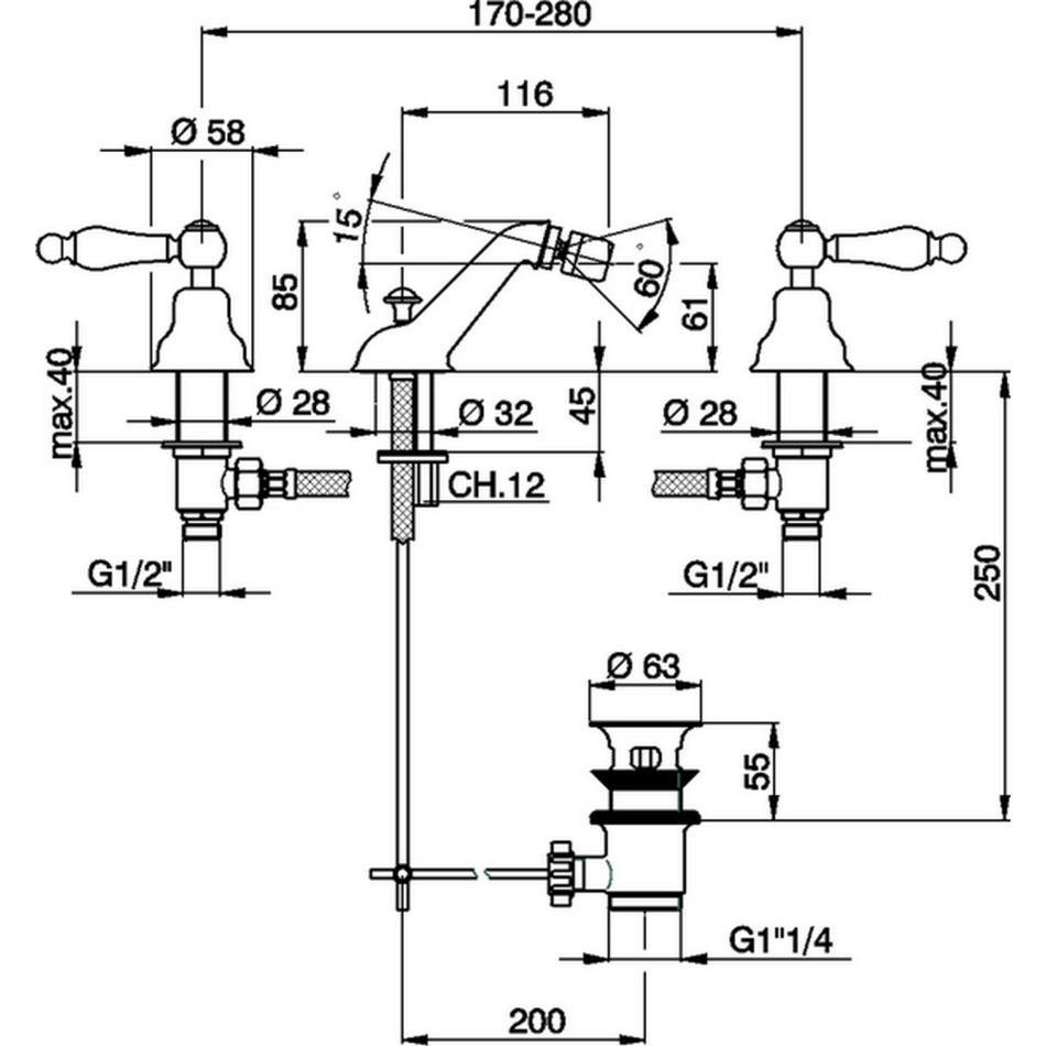 Смеситель Cisal Arcana Toscana TS00122027 для биде с донным клапаном, бронза