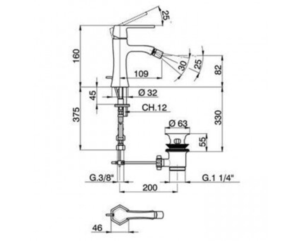 Смеситель Cisal Cherie CE00055024 для биде на 1 отверстие с донным клапаном, золото
