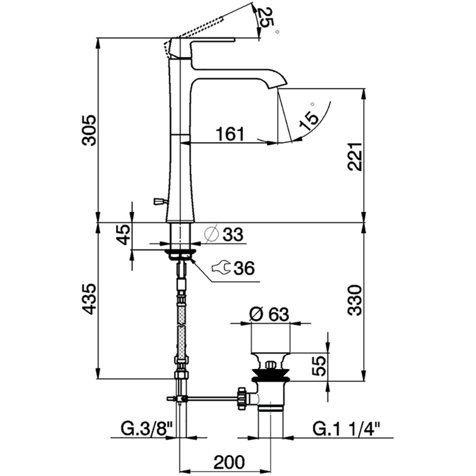 Смеситель Cisal Cherie CX0012206T для биде на 3 отв. с донным клапаном, цвет хром/черный матовый
