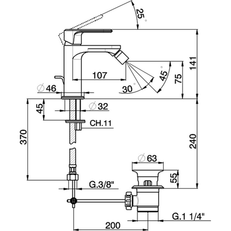 Смеситель Cisal LineaViva LV00055021 для биде с донным клапаном, хром