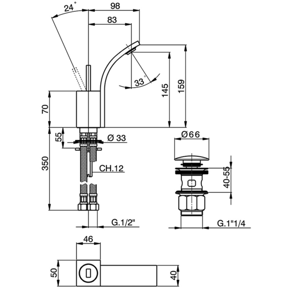Смеситель Cisal Wave WA00055221 однорычажный для биде на 1 отверстие с донным клапаном, цвет хром