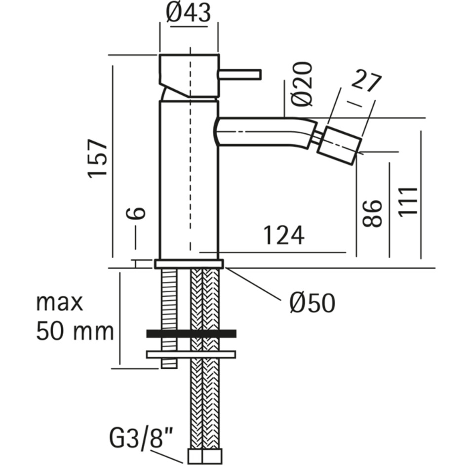 Смеситель Cisal Xion XI000564D1 однорычажный для биде на 1 отверстие без донного клапана, цвет нержавеющая сталь