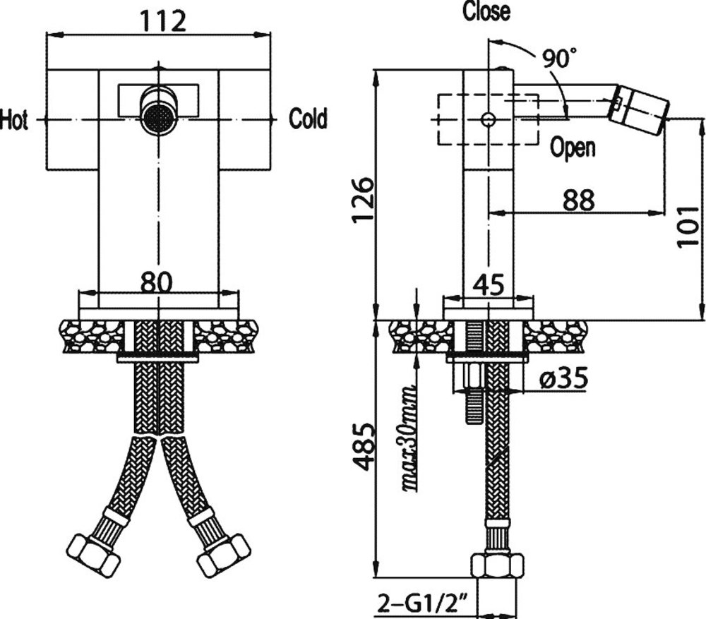 - Стандарт подводки: 1/2''