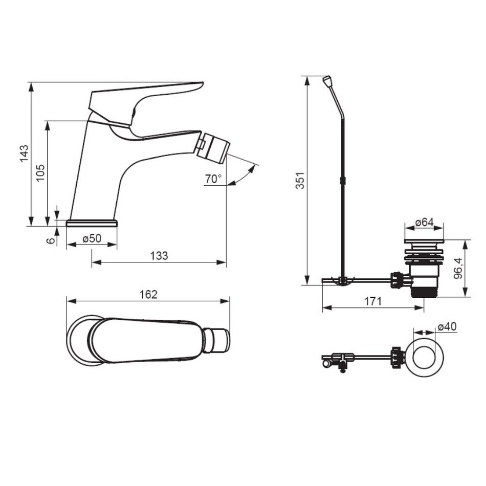 Смеситель для биде Damixa Jupiter 770240300 с донным клапаном, черный
