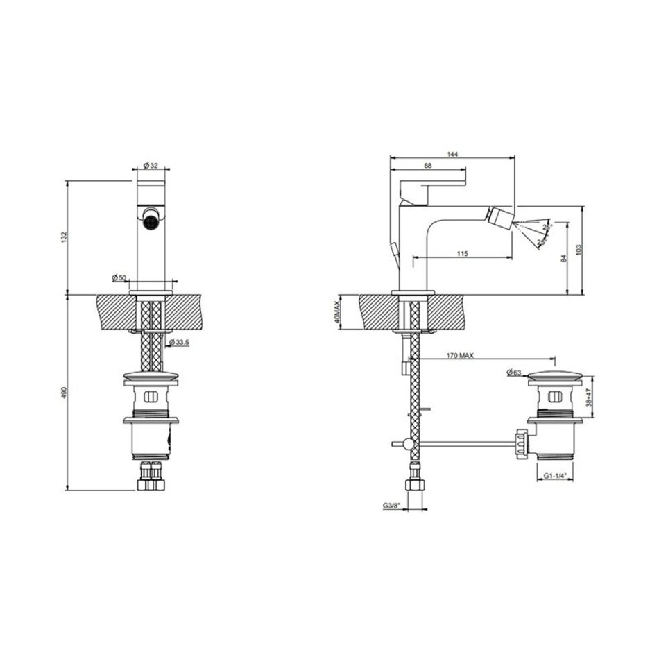Смеситель для биде Gessi Via Manzoni, 38607/299, цвет черный матовый