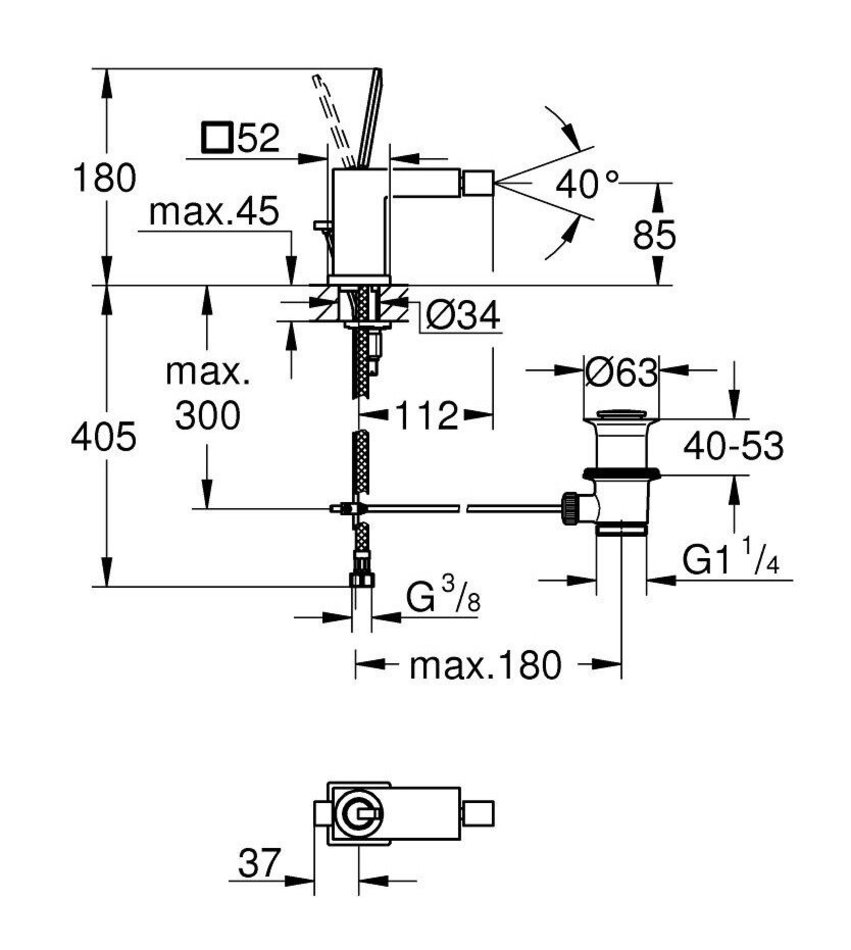 Смеситель для биде Grohe Eurocube Joy 23664000, с донным клапаном, хром