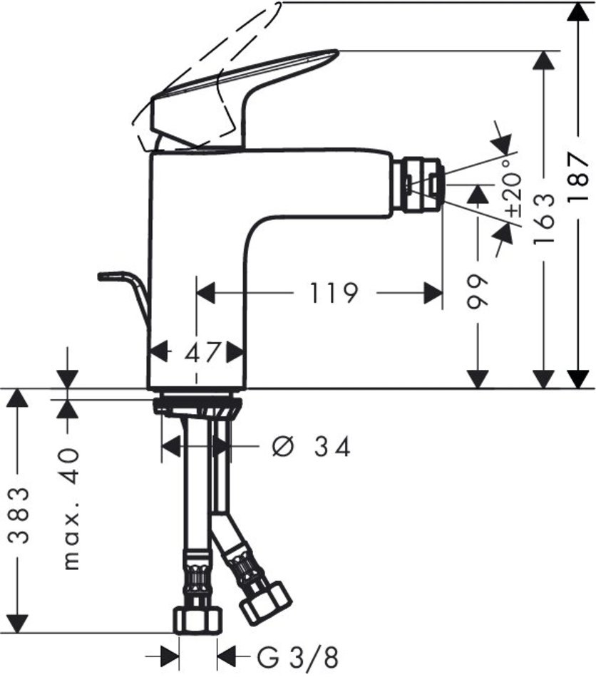 • состоит из: однорычажный смеситель для биде, слив/перелив