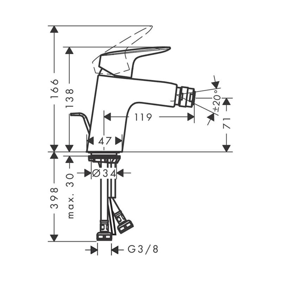 Смеситель для биде Hansgrohe Logis, с донным клапаном, черный матовый, 71204670