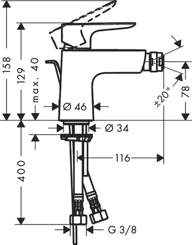 - состоит из: однорычажный смеситель для биде, слив/перелив