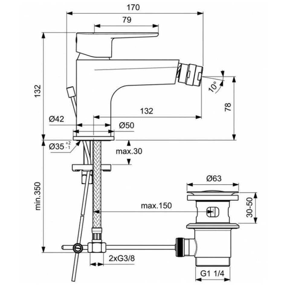 Смеситель для биде Ideal Standard Cerafine Model O, цвет черный шелк, BC705XG