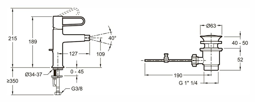 Смеситель для биде Jacob Delafon Odeon Rive Gauche E21033-00-CP с донным клапаном, хром, ручка белая