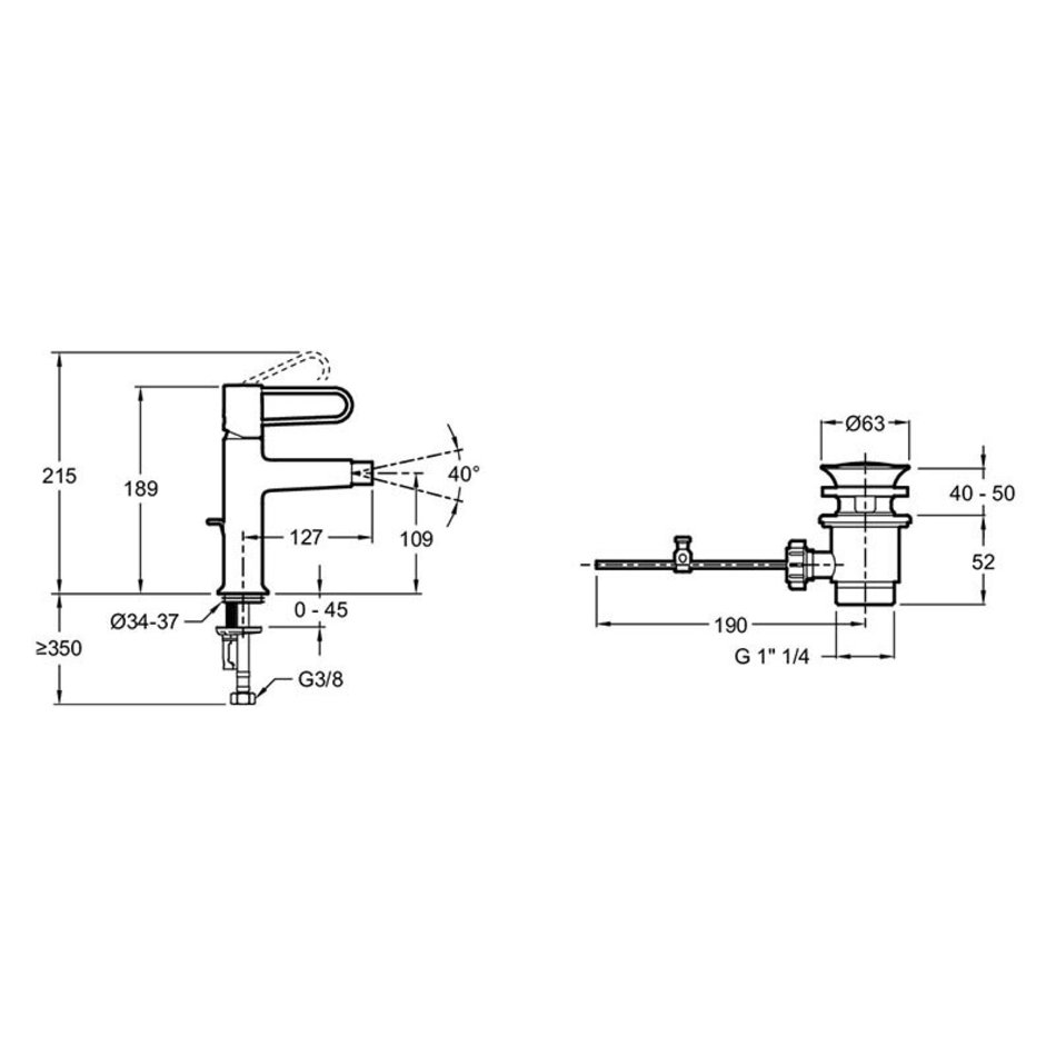 Смеситель для биде Jacob Delafon Odeon Rive Gauche E21033-CP-BL, с донным клапаном, корпус черный, ручка хром