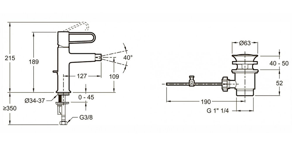 Смеситель для биде Jacob Delafon Odeon Rive Gauche E21033-GLD-CP с донным клапаном, хром, ручка золотая