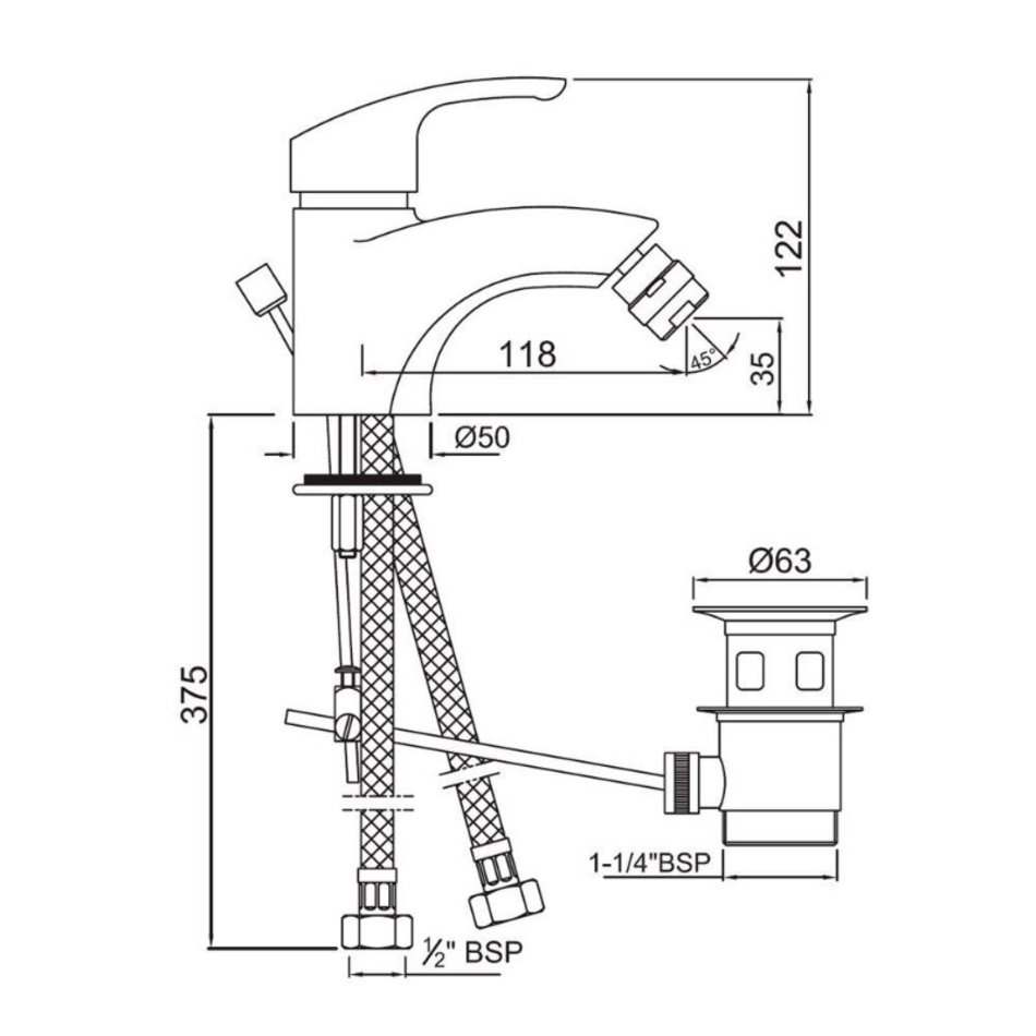 Смеситель для биде Jaquar Eko EKO-CHR-33213B, с донным клапаном, цвет хром