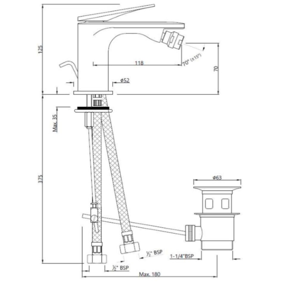 Смеситель для биде Jaquar Laguna LAG-CHR-91213BWF, с донным клапаном, цвет хром