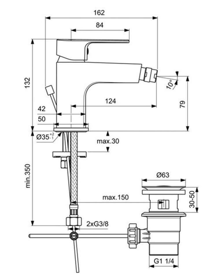Смеситель Ideal Standard Cerafine Model D для биде, хром, BC492AA