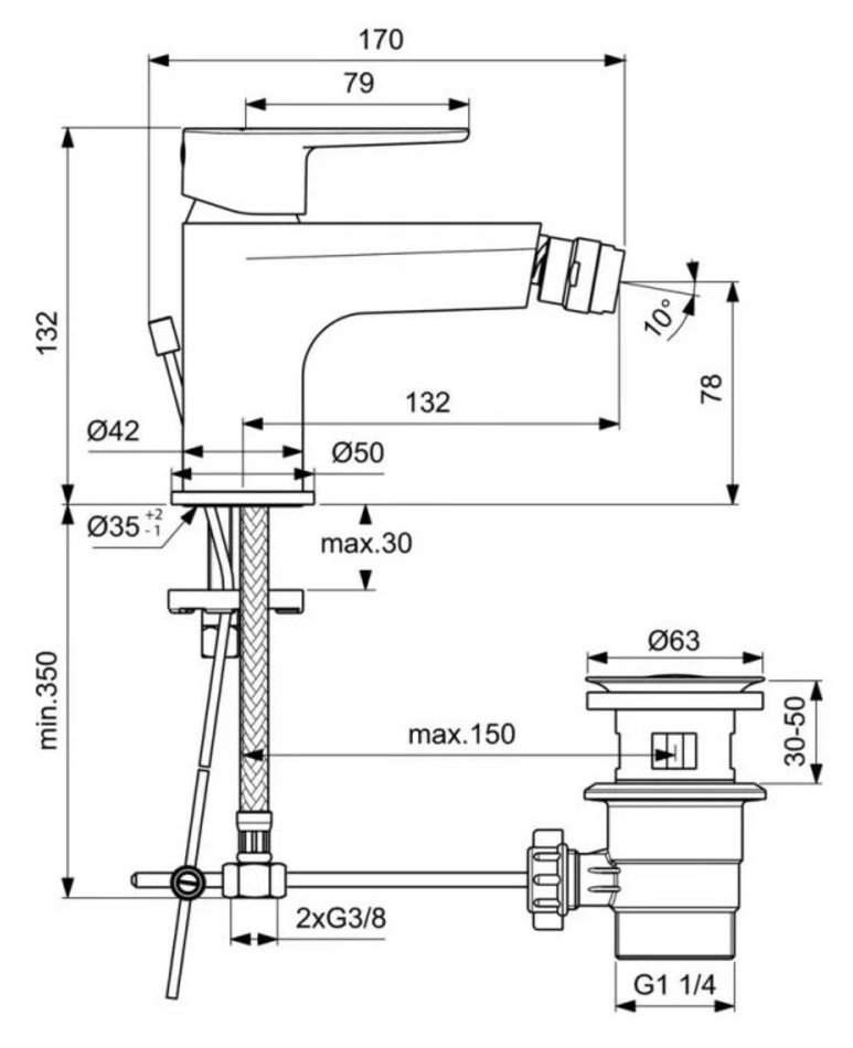 Смеситель Ideal Standard Cerafine Model O для биде, хром, BC498AA