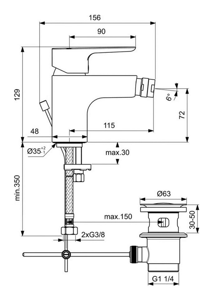 Смеситель Ideal Standard Ceraplan III Slim для биде, хром, BC626AA