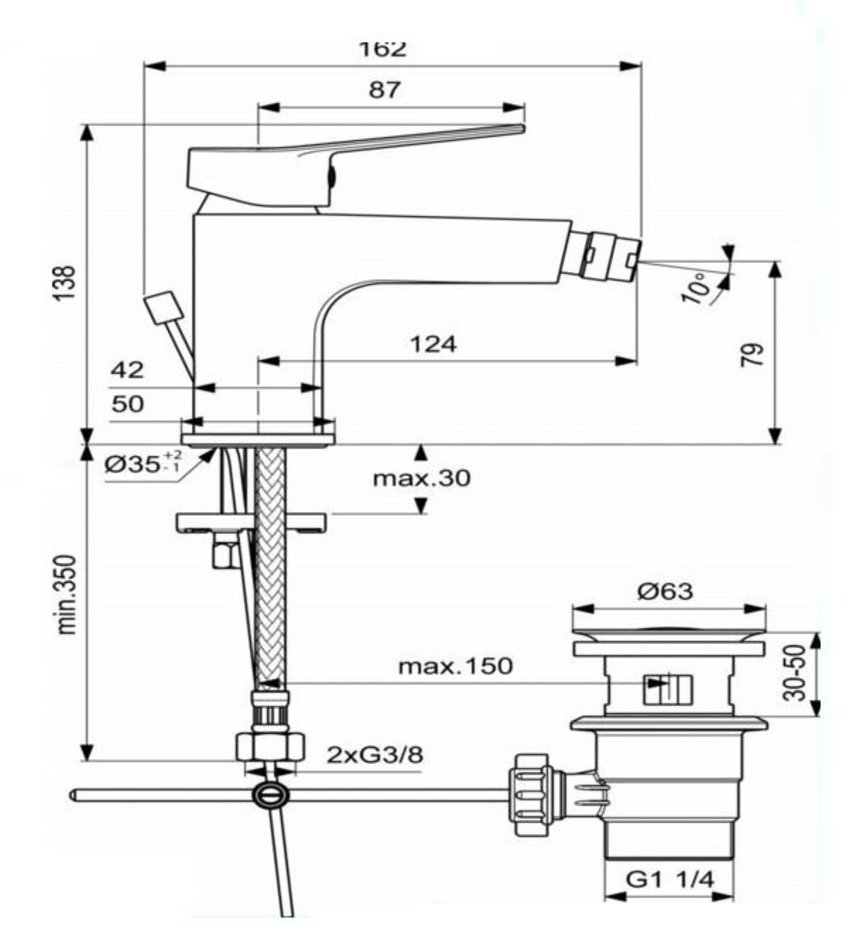 Смеситель Ideal Standard Entella BC234AA для биде, с донным клапаном, хром