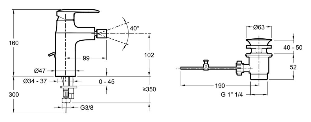 Смеситель Jacob Delafon Kumin E99456-CP для биде