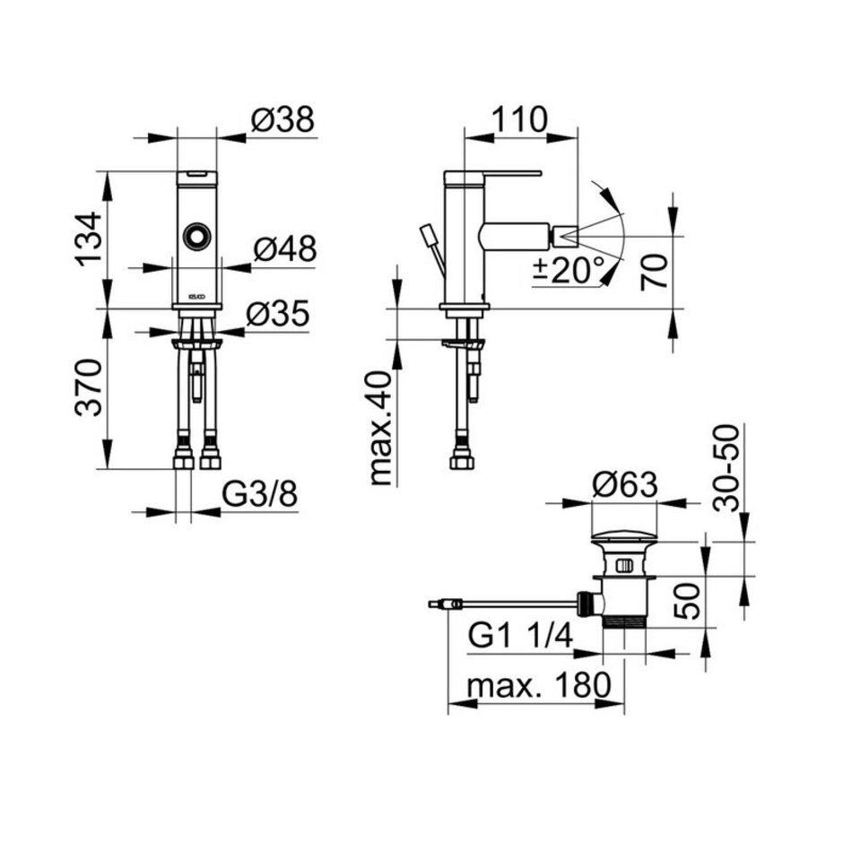Смеситель Keuco Ixmo Flat 59509013000 для биде, с донным клапаном, цвет хром