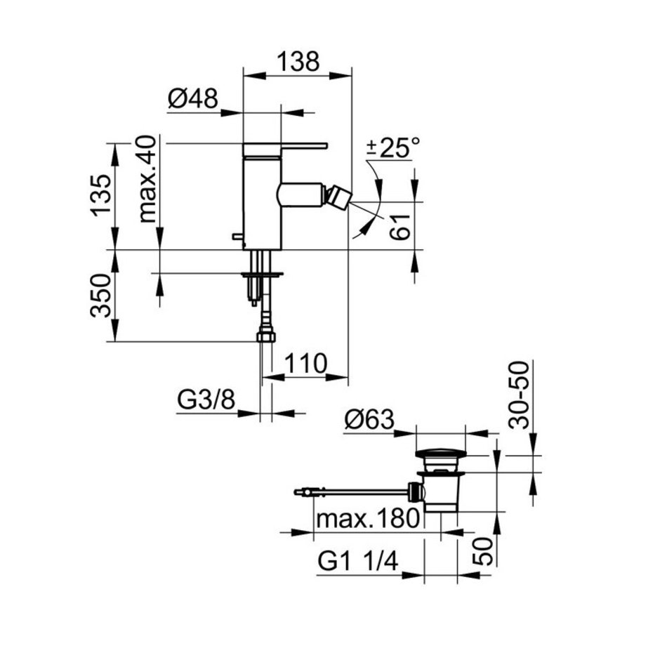 Смеситель Keuco Plan Blue 5390901000 для биде, с донным клапаном, цвет хром