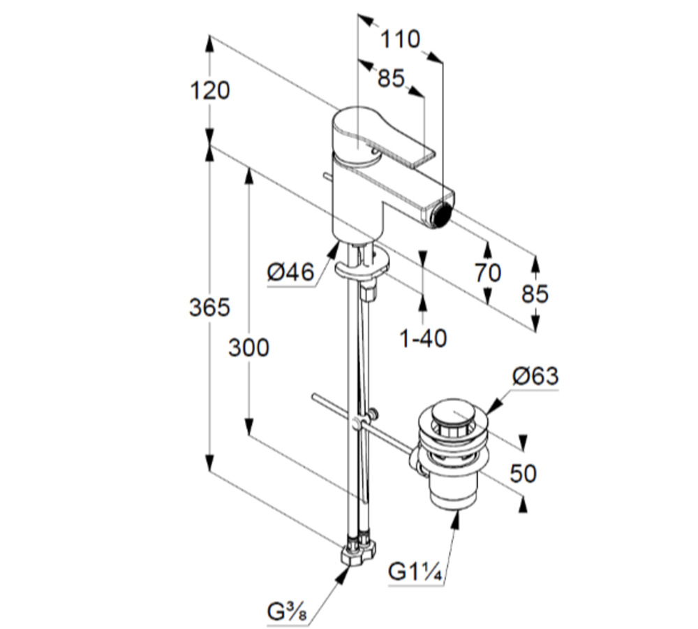 Смеситель Kludi Zenta SL, 485303965, для биде, с донным клапаном, черный матовый