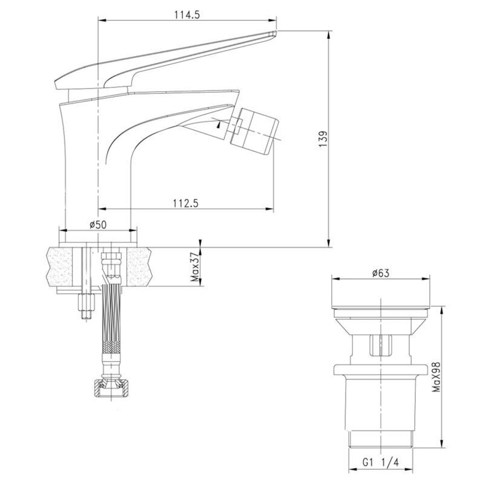 - Донный клапан 1¼", хромированный идет в комплекте и имеет нажимной механизм click-cluck