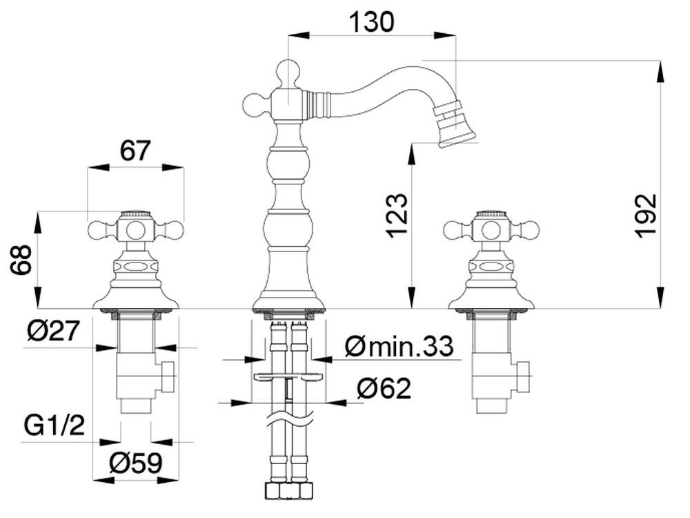 Смеситель Migliore Arcadia 18392 для биде на 3 отв. - золото