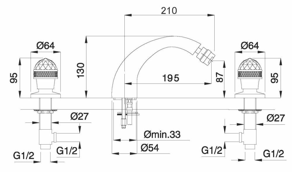 Смеситель Migliore Axo Swarovski 18504 для биде - золото, на 3 отверстия