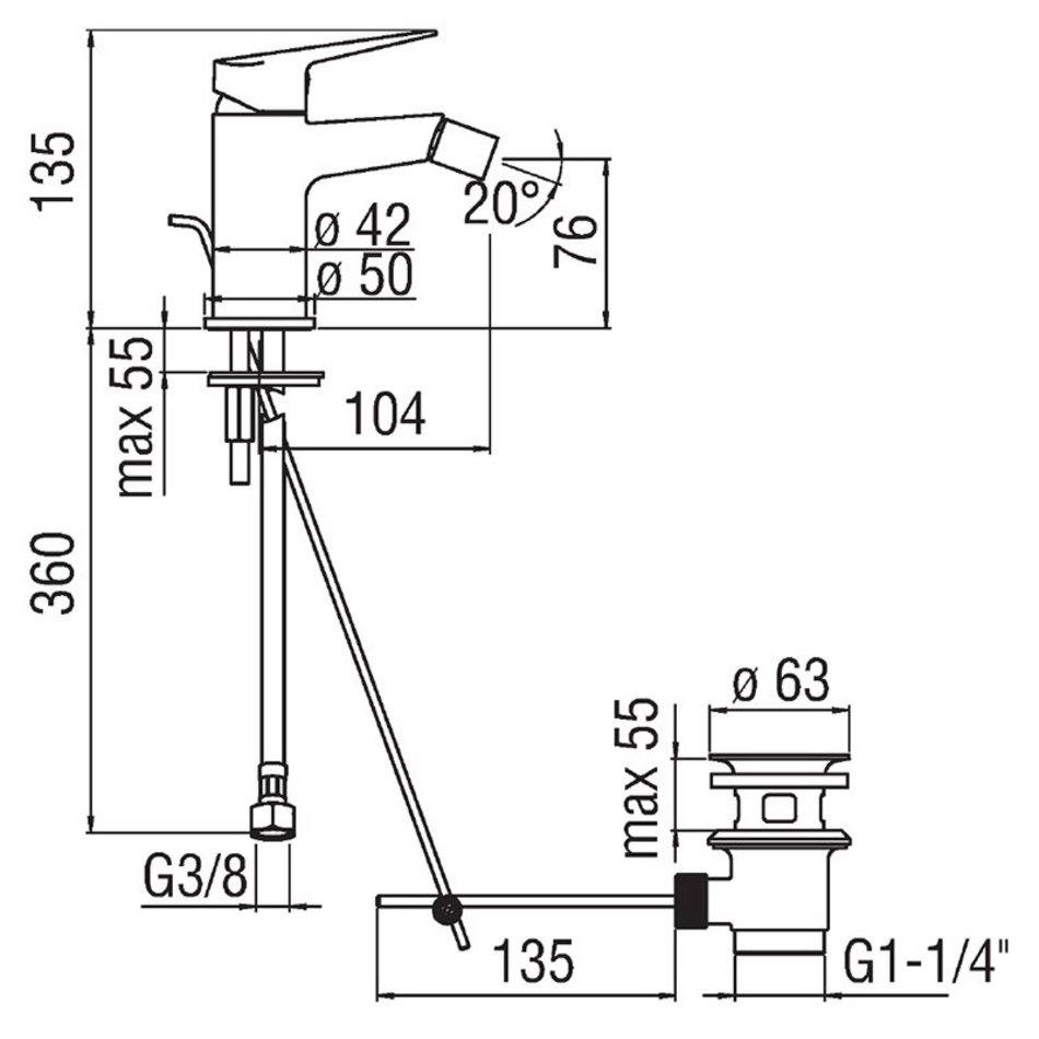 Смеситель Nobili Blues BS101119/1CR для биде, с донным клапаном, цвет хром глянцевый