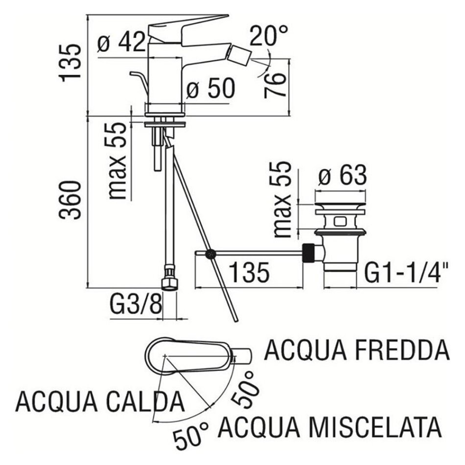 Смеситель Nobili Blues BSE101119/1CR для биде, с донным клапаном, цвет хром глянцевый