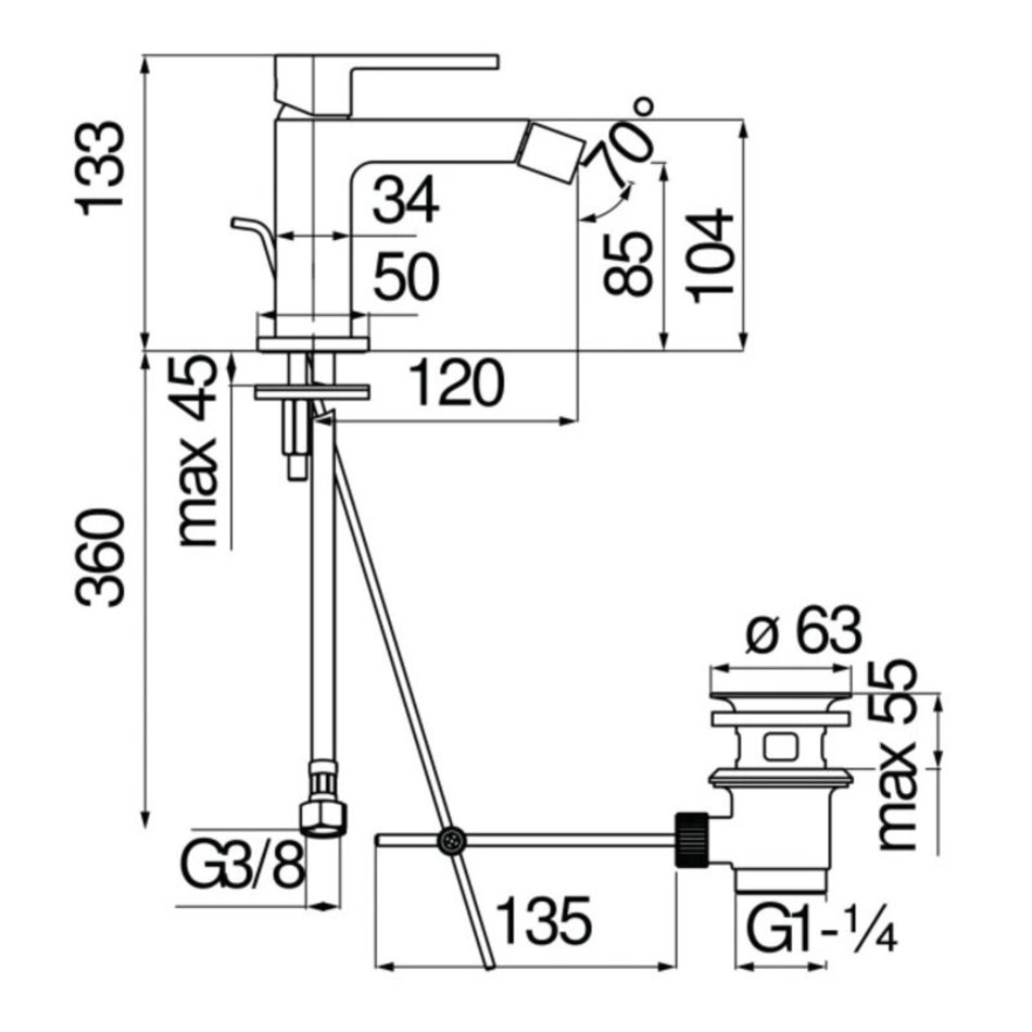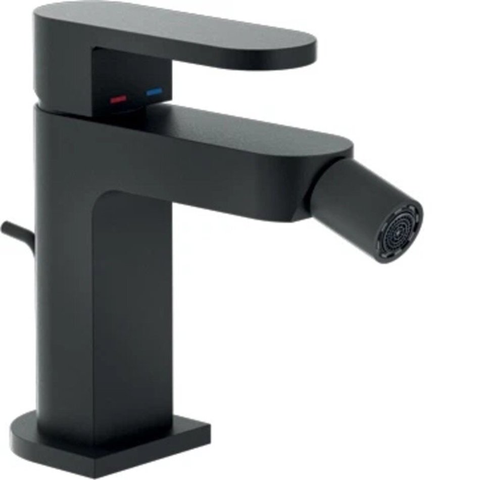 Смеситель для биде (чёрный матовый). Аэратор против известковых отложений M 22 x 1. Шарнирная форсунка. Слив Ø 1 1/4”. Шланги из нержавеющей стали Ø 3/8”.