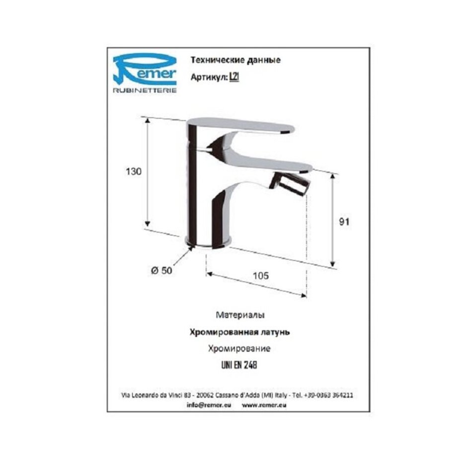 Смеситель Remer Class Line L21 для биде, без донного клапана, цвет хром