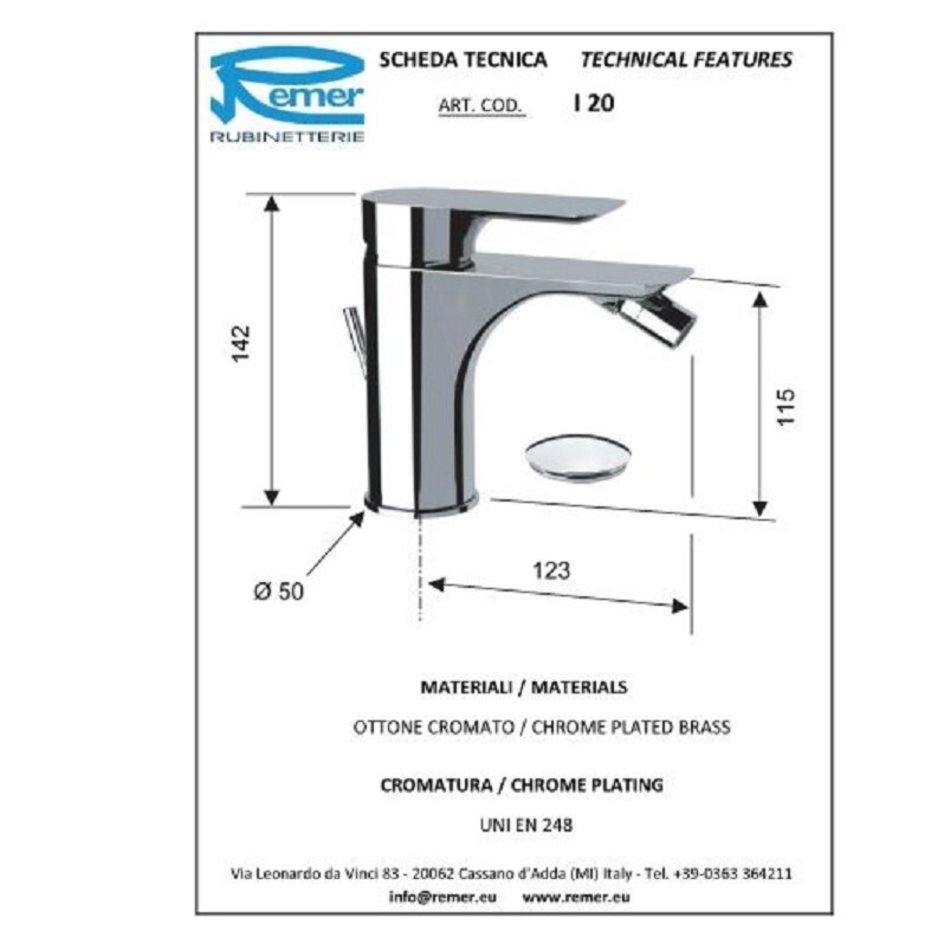 Смеситель Remer Infinity для биде, с донным клапоном, цвет хром, I20