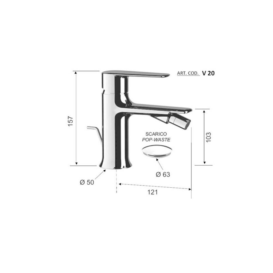 Смеситель Remer Vanity V20 для биде, c донным клапаном, цвет хром