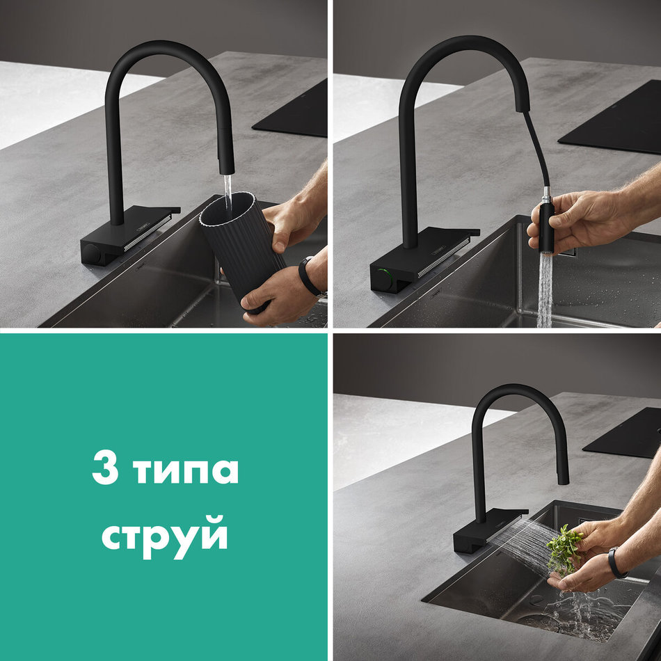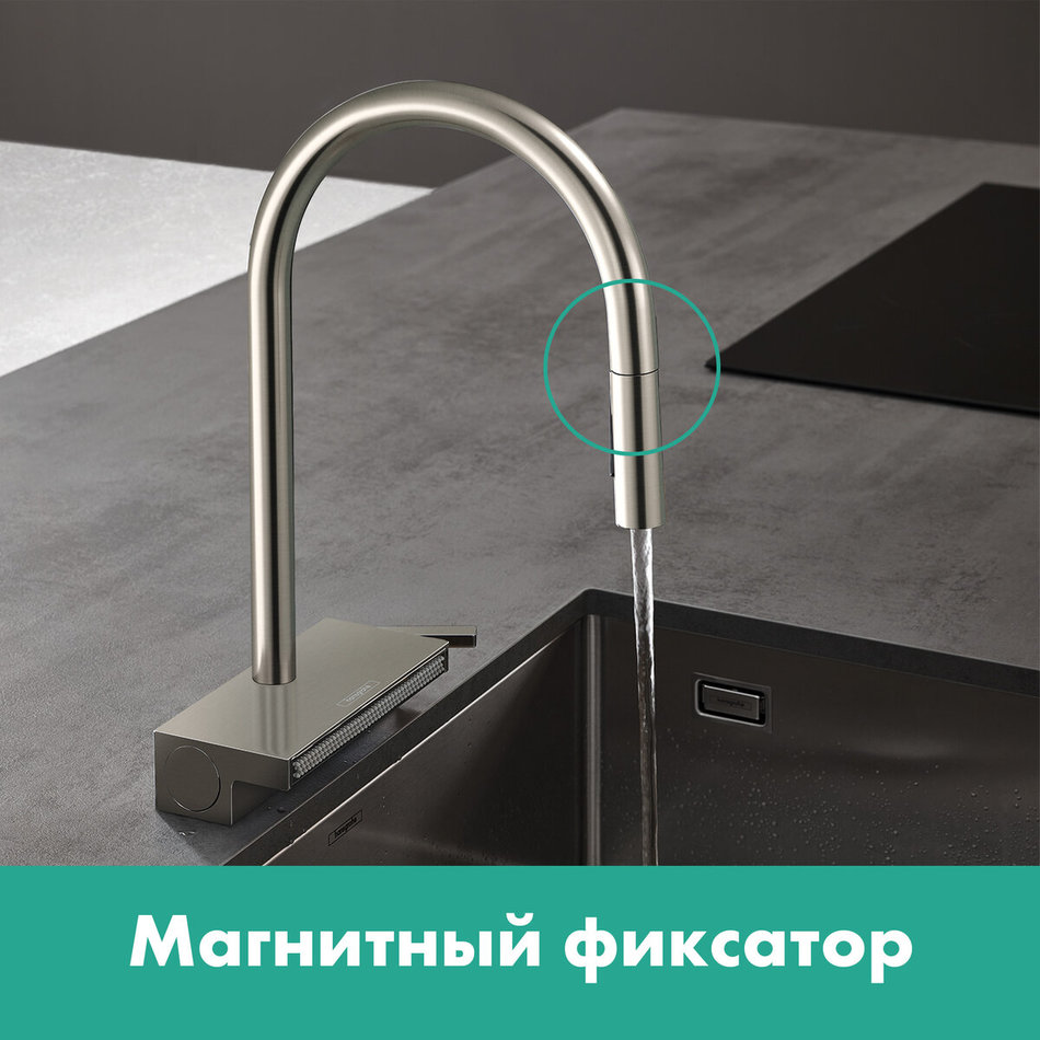 Кухонный смеситель Hansgrohe Aquno Select M81, 73831000, ComfortZone 170, с вытяжным изливом, 3 режима струи, хром
