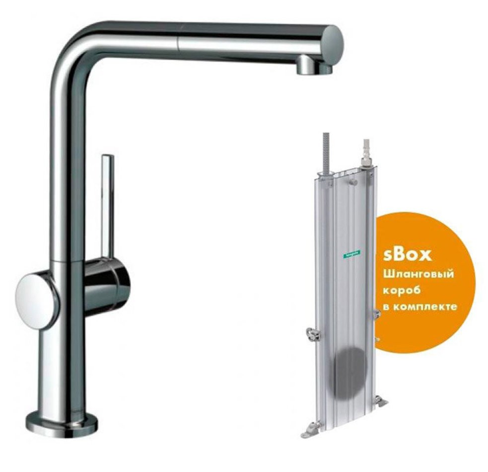 Кухонный смеситель Hansgrohe Talis M54 72809000, с вытяжным изливом, в комплекте с коробом sBox для шланга, хром