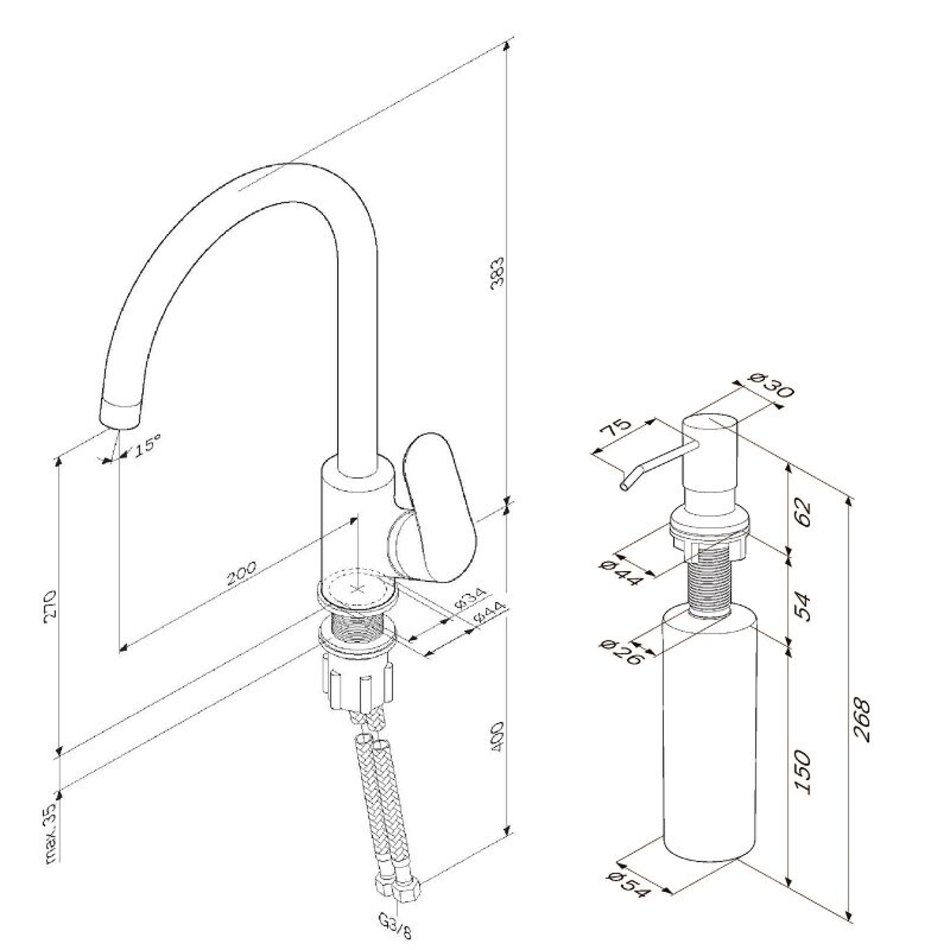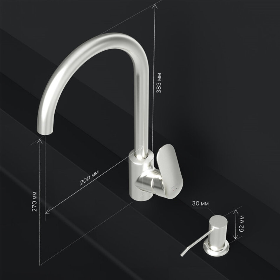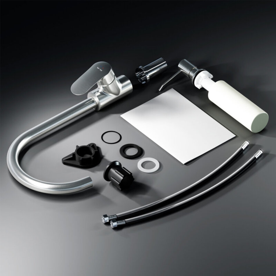 Состав поставки: смеситель (подводка, установочный крепёж), диспенсер, инструкция