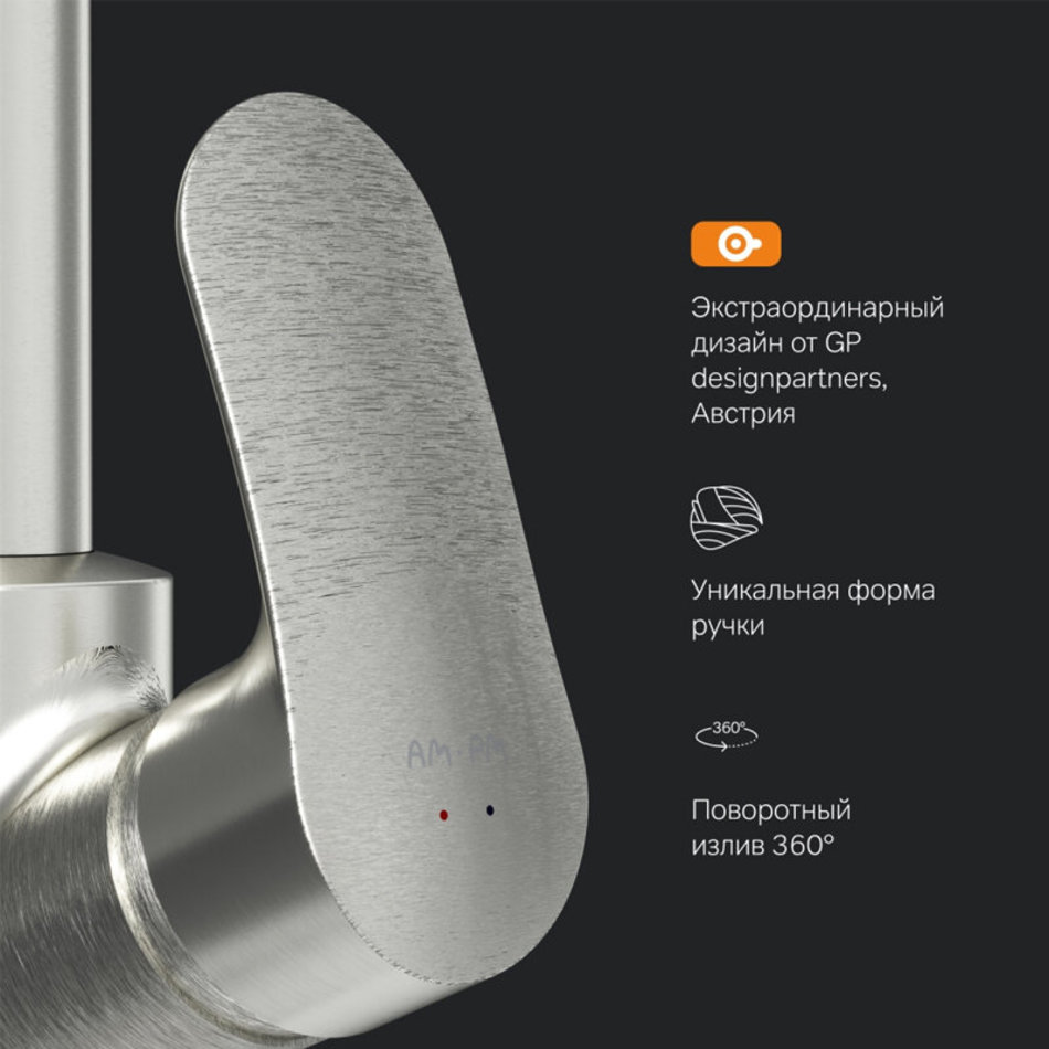Промонабор 2в1: Смеситель AM.PM Like F8007D11 для кухни, с универсальным диспенсером, сатин