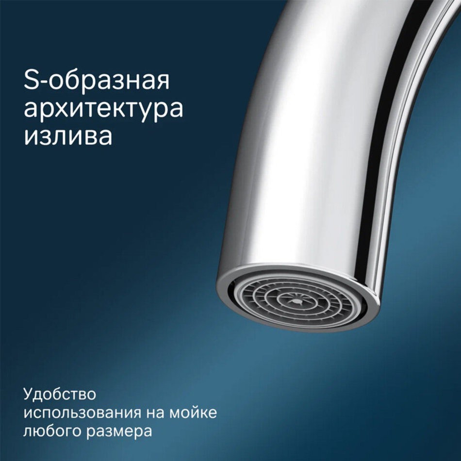 - Максимальный комфорт: плавное вращение повортного излива в любом направлении обеспечивает непревзойденное удовольстве от использования и удобство в работе на кухне;