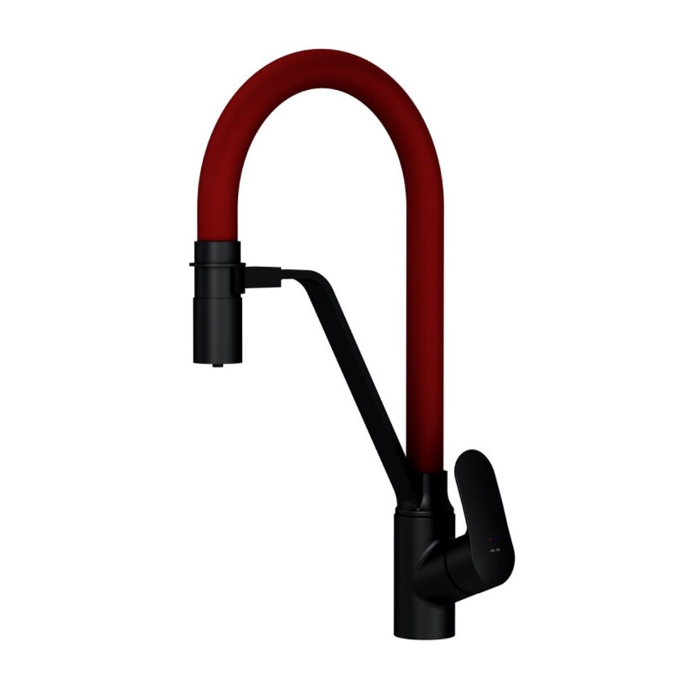 Смеситель Am.Pm Like F8007828 для кухонной мойки, с подключением к фильтру, гибкий излив, цвет черный/красный