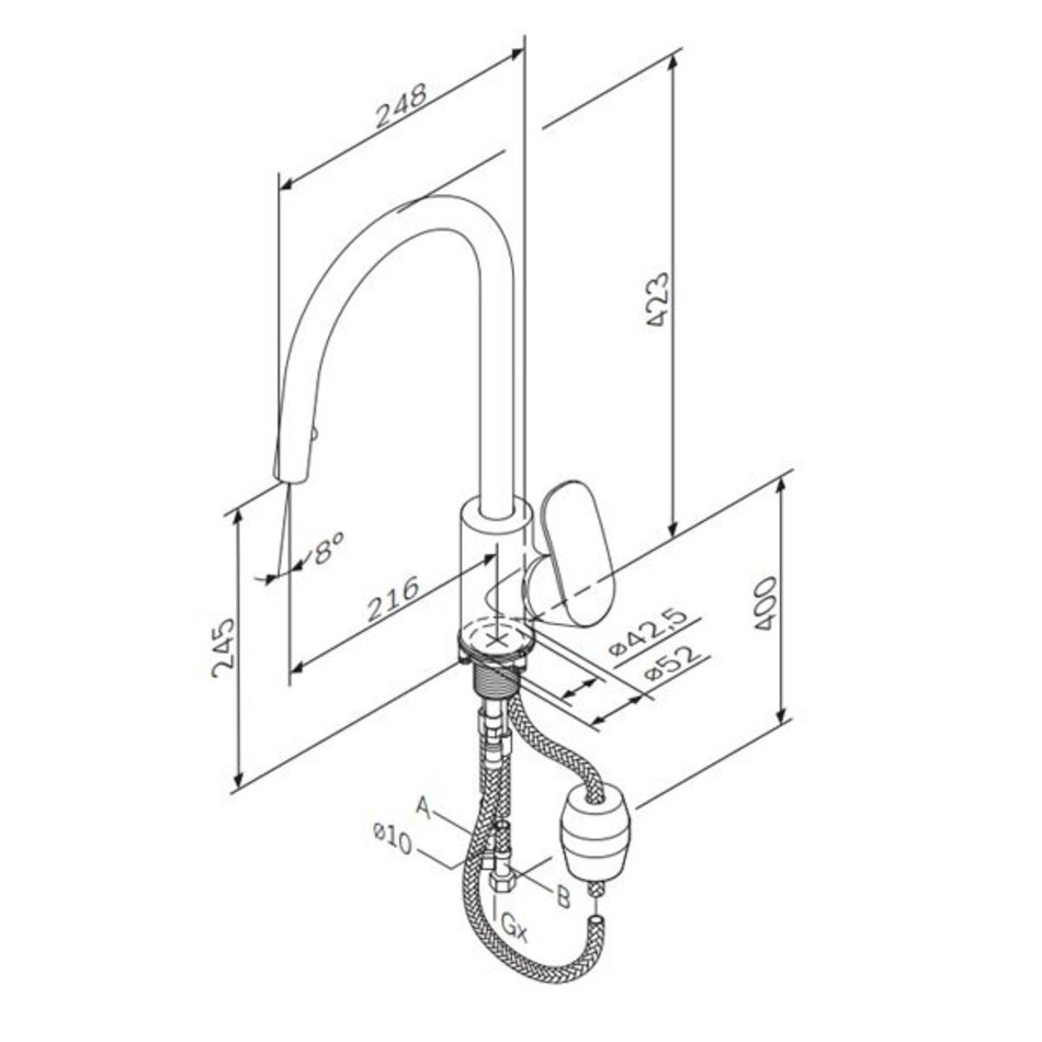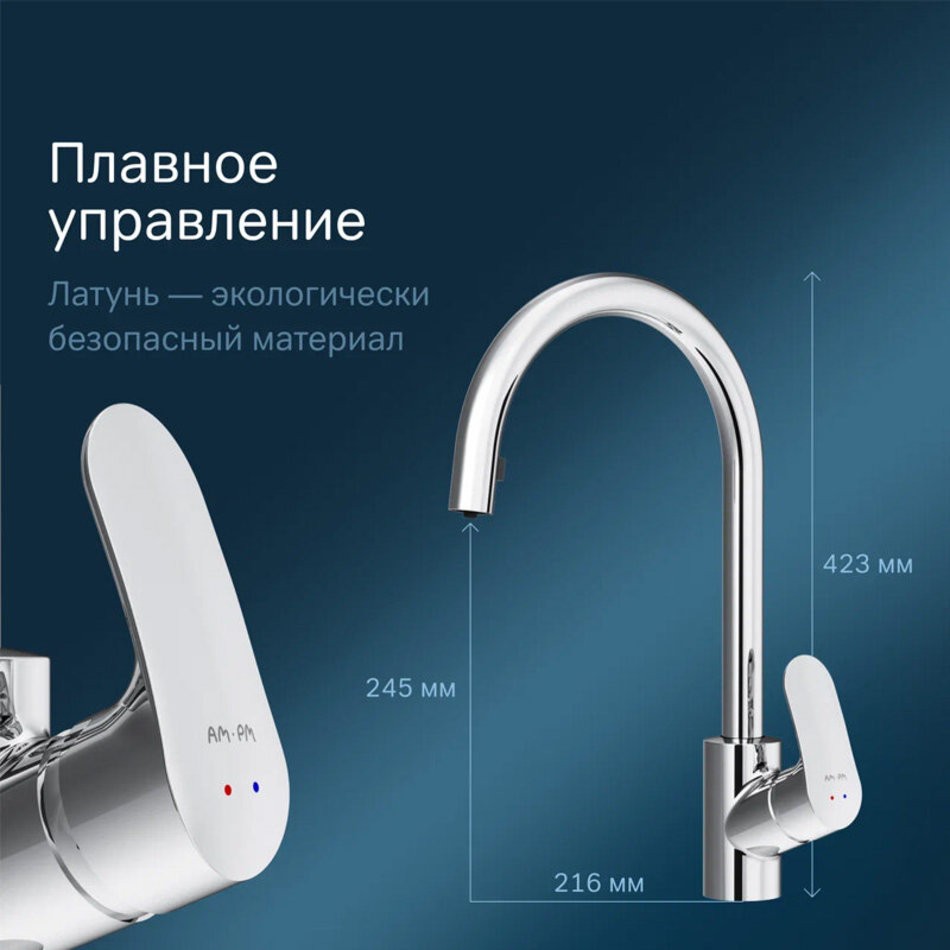 Смеситель Am.Pm Like F8012000 для кухонной мойки с вытяжным изливом