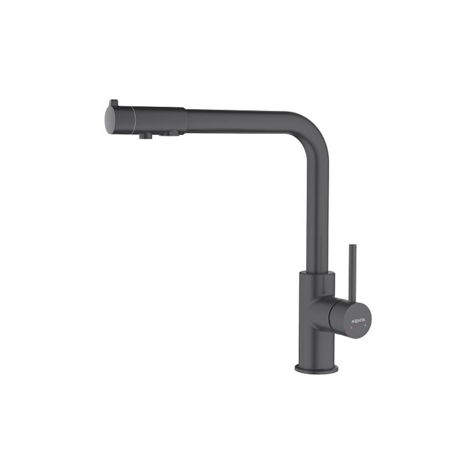 Смеситель Aquatek Европа AQ1386MB для кухонной мойки, с функцией подачи питьевой воды, цвет черный матовый