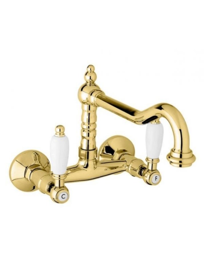 Смеситель Cezares FIRST-LLP-03/24-Bi для кухни, золото 24 карат, ручки белые